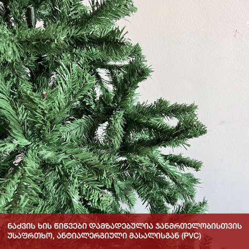- ნაძვის ხე გამძლე დრეკადი მეტალის ტოტებით და ჯანმრთელობისთვის უსაფრთხო მასალისგან დამზადებული წიწვებით. მეტალის მყარი სადგამით და მთავარი ღერძით.