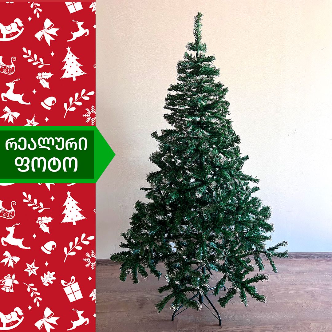 - ნაძვის ხე დათოვლილი ბოლოებით,გამძლე დრეკადი მეტალის ტოტებით და ჯანმრთელობისთვის უსაფრთხო მასალისგან დამზადებული წიწვებით. მეტალის მყარი სადგამით და მთავარი ღერძით.