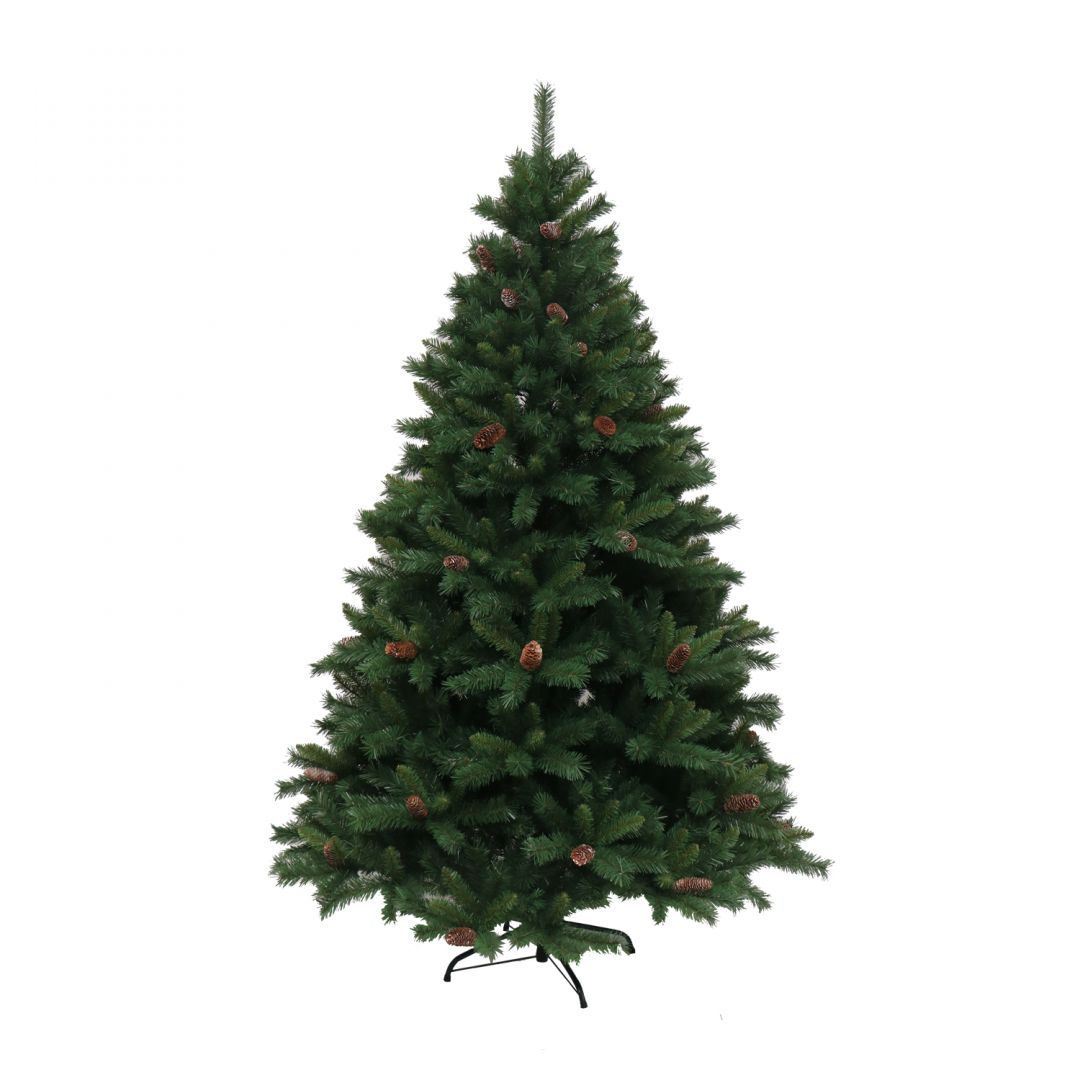 - ნაძვის ხე, გაფორმებული გრძელი გირჩებით. გამძლე დრეკადი მეტალის ტოტებით და ჯანმრთელობისთვის უსაფრთხო მასალისგან დამზადებული წიწვებით. მეტალის მყარი სადგამით და მთავარი ღერძით.