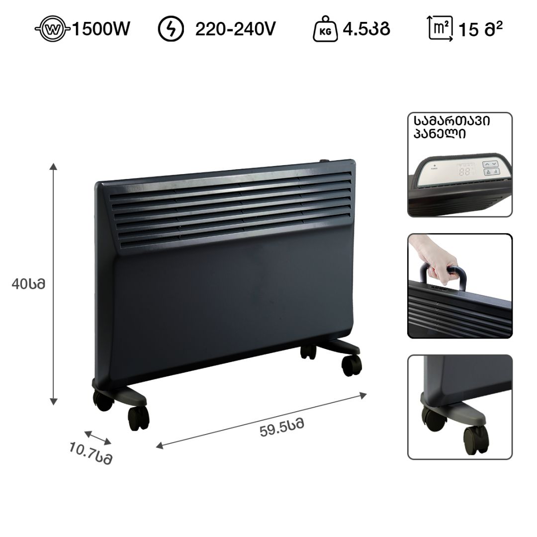 კონვექტორული გამათბობელი - 1500 ვატიანი, შავი NDB-15DW